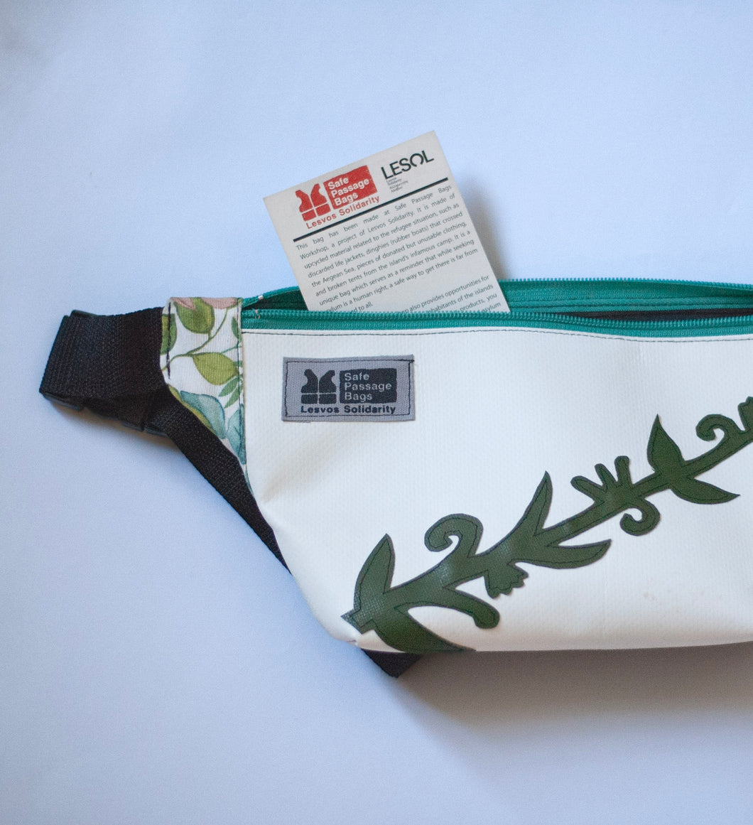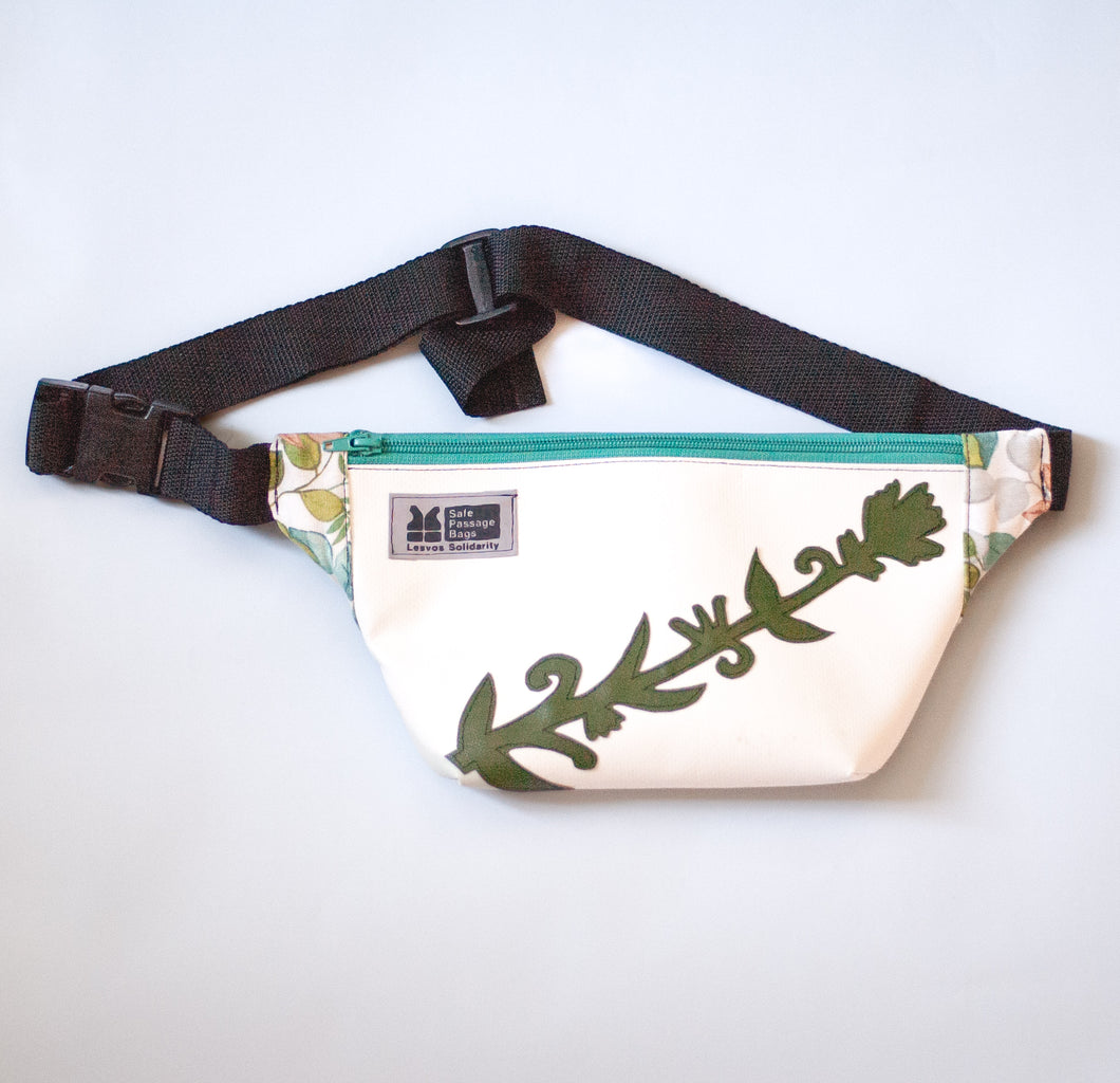 Just like the hip bag but with a little extra flair - this stylish bag is perfect for your everyday belongings. Made from recycled dinghy collected from the shores of Lesvos - the Thalassa Blossoms hip bag is more than just storage. With this bag, you also honor the difficult journey of those who crossed the sea in search of safety and join us in advocating for safe passage.